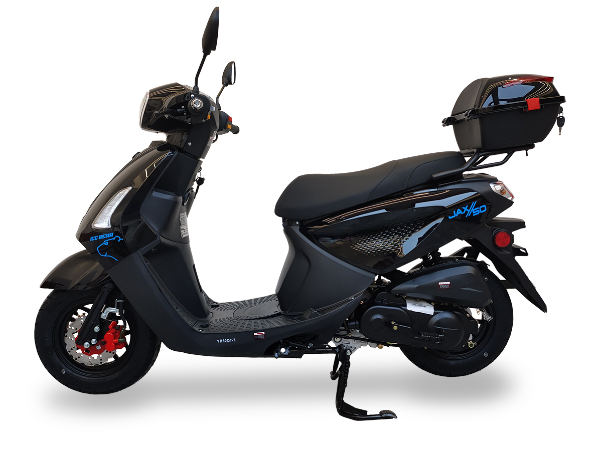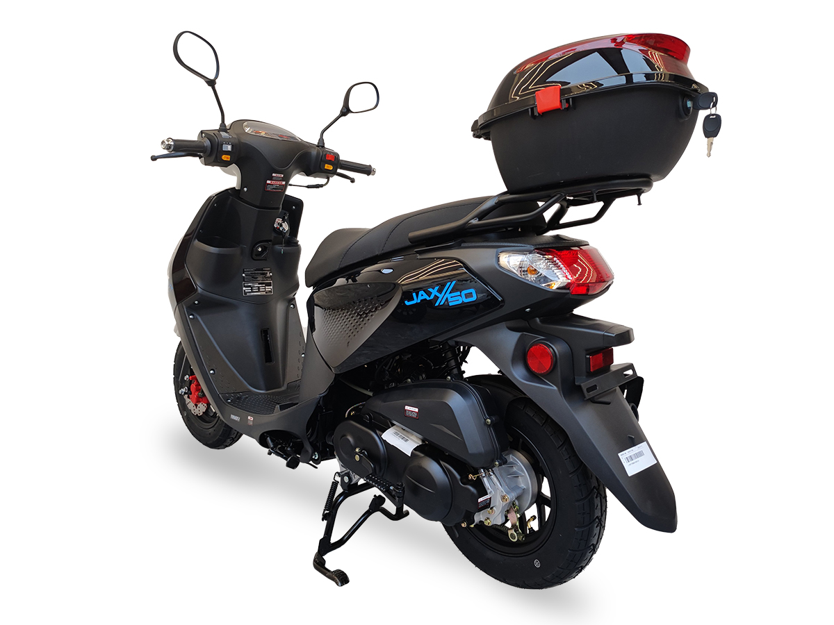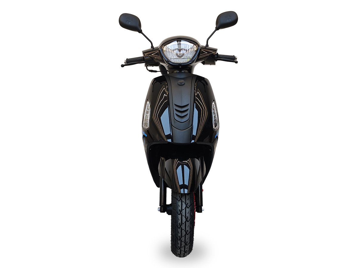 50cc gy6 engine, disc front/drum rear brakes, 10″ wheels, Kenda tires, LED Lights, USB Port